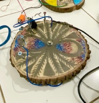 This workshop was part of the ROSA artist in residency program the workshop focused on creating DIY instruments capable of generating simple noise frequencies using only a few electronic components. The design of each instrument depended on the participants, who used local objects (plastic bottles, wood, paper, etc.) to build their creations. The resulting sounds varied, with each simple instrument representing the inner vibrations and personal expressions of its maker.