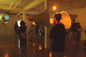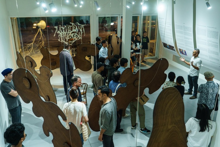 The exhibition features three sound installation pieces by Arnont, alongside two video art works developed in collaboration between NooN collective and Arnont.