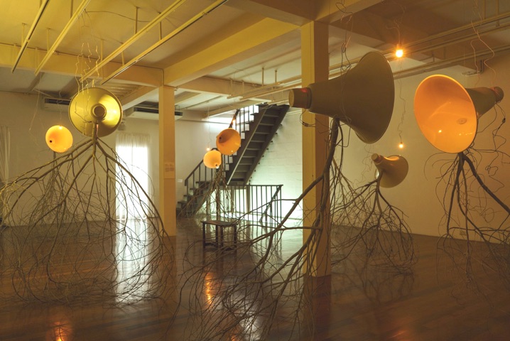 9 speaker trees, 9-channel sound system (horn speakers), 9 media players, 1 video (15 mins)