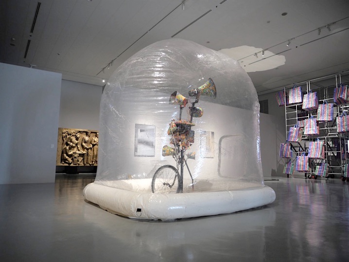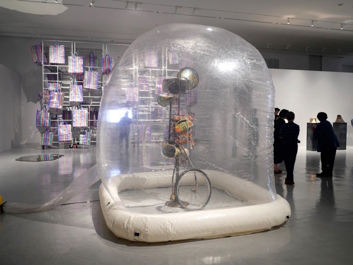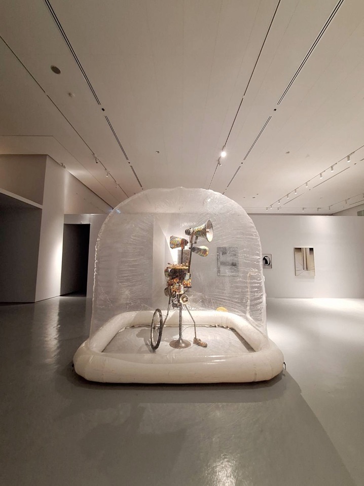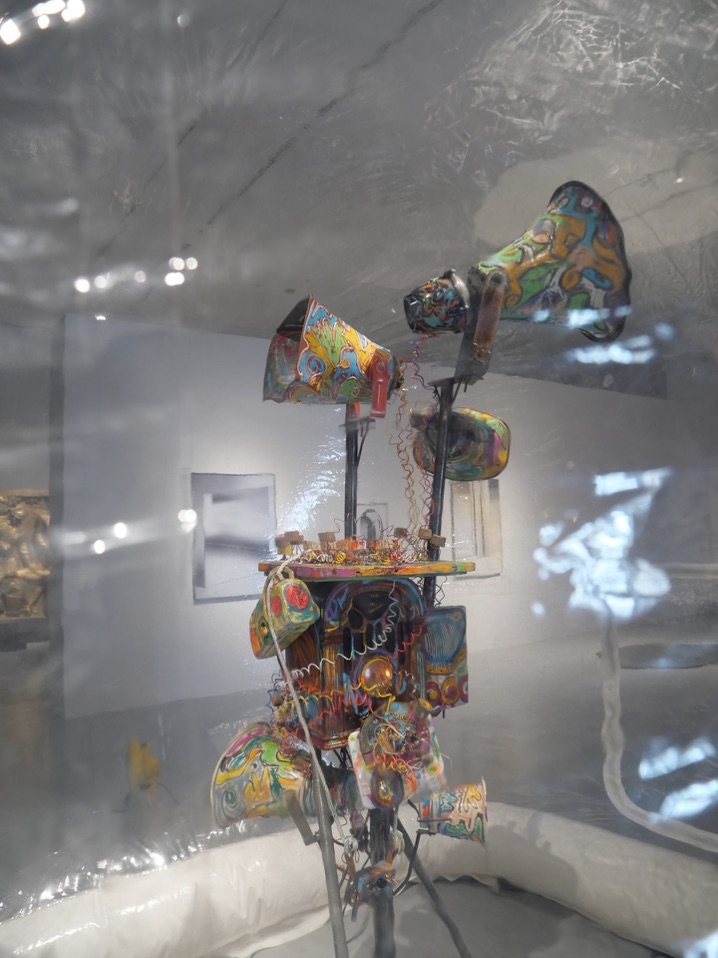 The sound sculpture made from used sound objects, radio receivers, kid toys, etc. Installation in the inflatable transparent tent 300 x 220 x 290 cm. for “Acquisitions office of Contemporary Art and Culture 2023” at National Art Gallery, Ministry of Culture, Bangkok. The collection of Ministry of Culture Thailand 2023.