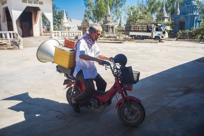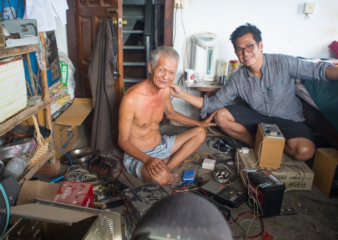 This project marks another collaboration between both artists. This time, Arnont has immersed himself in the life and work of Loeung, assisting him in preparing sound equipment for local funeral ceremonies. These sound devices are inventions of Loeung himself. After helping with the funeral ceremonies during the day, in the evenings Arnont and Loeung come together to create noise music using old radios salvaged from Loeung and Arnont's homes. This serves as a form of communication between them, as they cannot communicate through any other language. Arnont learns about Loeung's indigenous sound knowledge, and together, they showcase their collaborative work using the self-made musical instruments at Sa Sa Art Projects, presenting a joint sound art performance on the opening day. This marks Loeung's first performance related to noise.