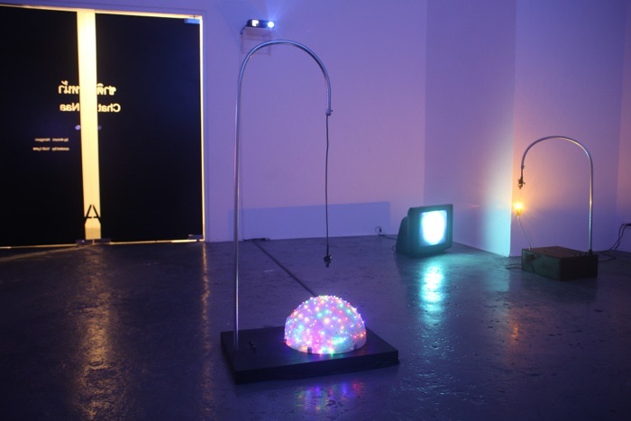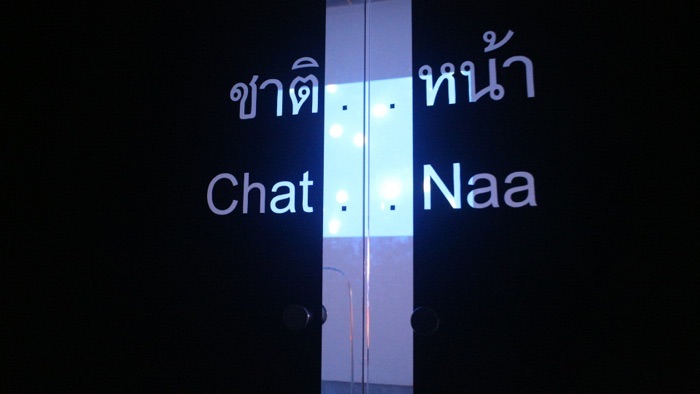 Chat…Naa brings together previous and new works by Chiang Mai-based artist Arnont Nongyao into an immersive installation of sound, light and moving images. Chat means life, incarnation or nation. Naa means next, future, or to come. The playfulness in the title reflects the attention to a state of yet to come. A state that is transforming and being transformed. It is at once unstable and fragile, yet full of potential. Arnont, therefore, invites us to experience a realm of transition and possibility.