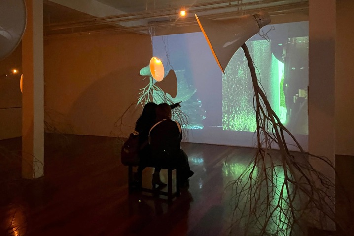 NooN Collective from the UK and Thai sound artist Arnont Nongyao explored the sound and myceloid communication of living organisms within caves. By linking Satun UNESCO Global Geopark in Thailand and the English Riviera UNESCO Global Geopark in Torquay, UK, it weaves ecological and cultural threads between the two regions. They have woven their abstract discoveries from the caves into a sound and moving-image installation. The exhibition invites audiences to step into darkness, awaken their senses and journey back to a primordial time when our relationship with the world was still fresh, intimate, and boundless in imagination.