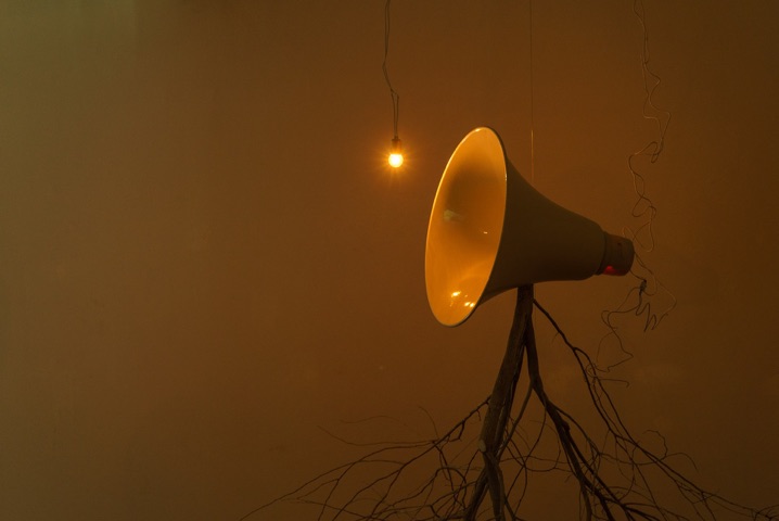 9 speaker trees, 9-channel sound system (horn speakers), 9 media players, 1 video (15 mins)