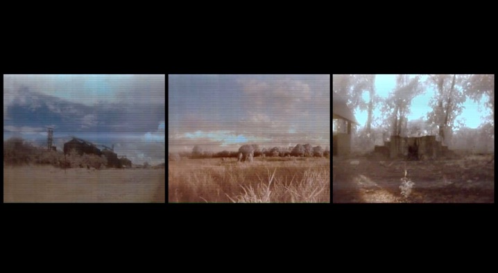 An old, nearly broken CCTV camera was repurposed to create a Lo-Fi infrared camera, which was then used to capture landscapes and sound field recordings familiar in the hometown of Lamphun, Thailand, much like a painter with their easel. The images recorded include haystacks reminiscent of Monet’s paintings, a large rice storage barn, and a cemetery. The videos were unintentionally infused with local electromagnetic and radio waves, adding unexpected layers, as if the environment itself contributed to these “Living Paintings”.