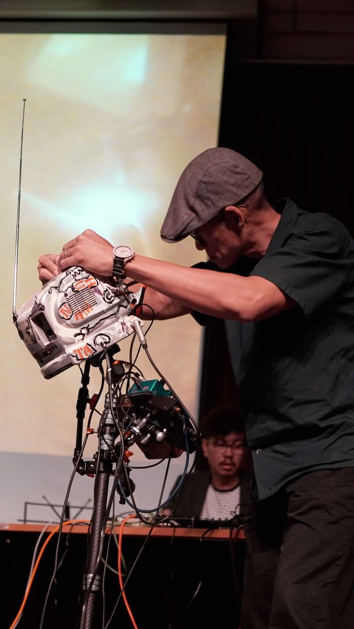 "Nam Ta-Hu" is a DIY audiovisual machine crafted from a recycled 7-inch TV. It independently reacts to sound, with noise visuals that follow the movements of a performing controller, created in collaboration with Tacet(i) Ensemble and Chatchai Notananda.