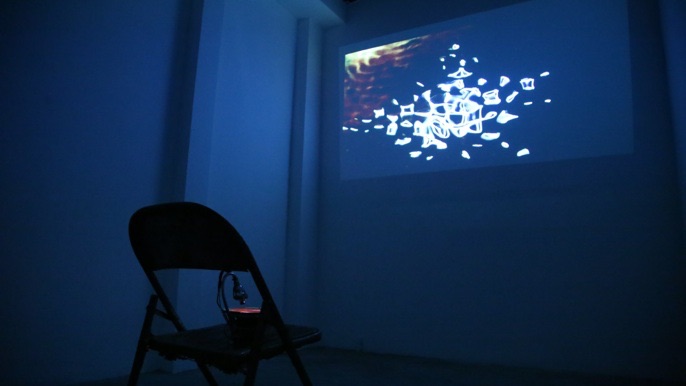 Warpaper is an interactive visual and sound installation, installed in the dark room. The speaker, camera, and sensors are attached to a chair, an ordinary chair that is easily available but somehow looks familiar to one of a significant photograph in Thai history decades ago...or perhaps this is just another coincidence. The work Warpaper acts like the artist’s invitation, asking the audience to join in and become part of their work. The key note from one of the selected songs is decoded and transmitted to a speaker that is filled with water, createing a sitespecific installation. Then, the vibration and image changed according to the audience’s actions and participation. In this idea, “us” the audience, have changed our role from ‘passive’ to ‘active’ as we are now the creator.