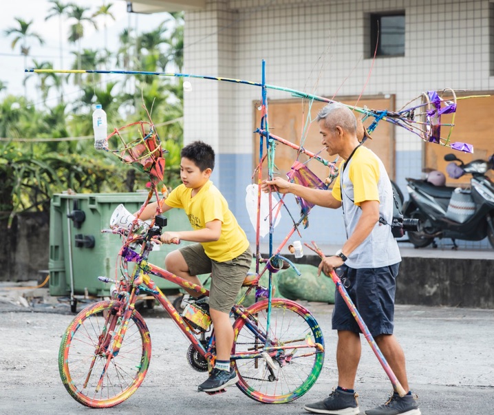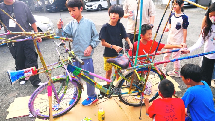 As part of a creative collaboration with students from the Dacheng Art Experimental Elementary School, this project reimagines bicycles as public musical instruments. Two donated bicycles were transformed using everyday objects—speakers, coconut shells, old motorcycle batteries, and foraged wood—into kinetic sound sculptures. The compositions include ambient sounds recorded from nature around the Dacheng area, allowing the bicycles to carry both movement and melody through the streets.
