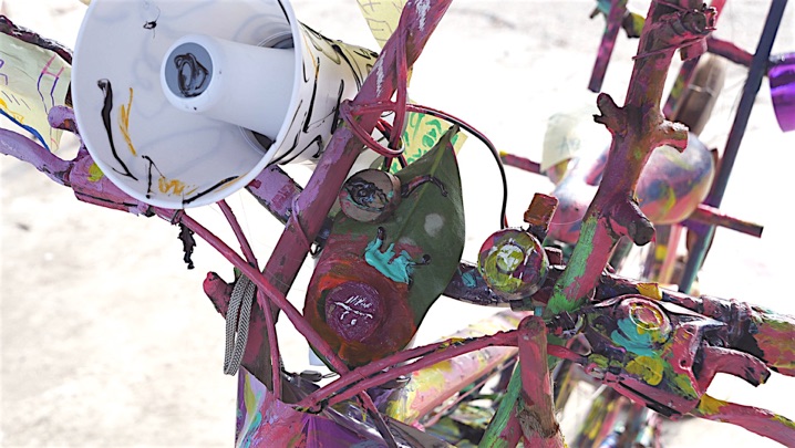 DIY public instrument : bicycles, coconut shells, bread leaves, used speakers,